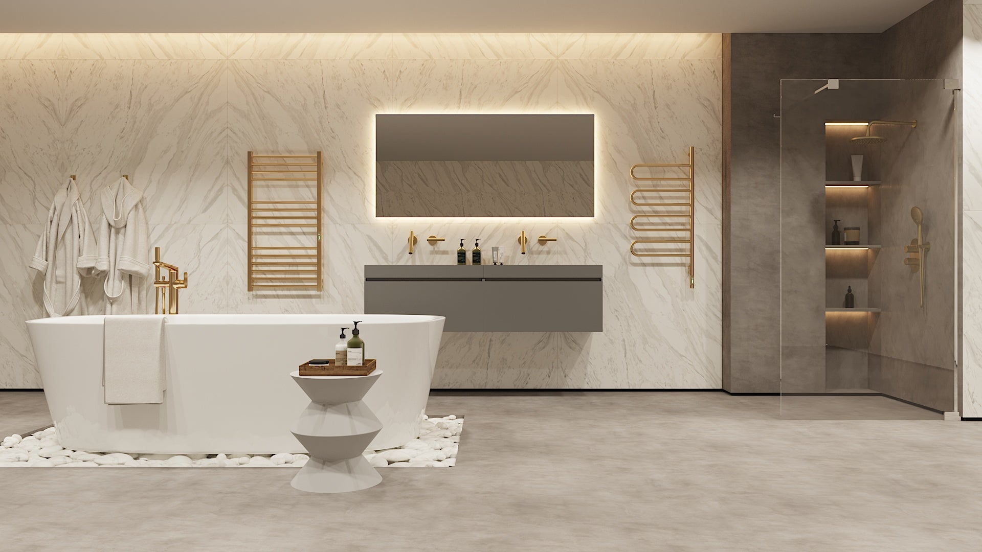 Para una instalación flexible, el cable de alimentación se puede conectar tanto en el lado izquierdo como en el derecho, dependiendo de la ubicación de la toma de corriente del baño. Esta opción está incluida en el conjunto de montaje estándar, lo que permite una instalación fácil e independiente. Además, para baños en renovación, está disponible un sistema de montaje oculto para esconder los cables de alimentación externos, asegurando un aspecto limpio y sin interrupciones.