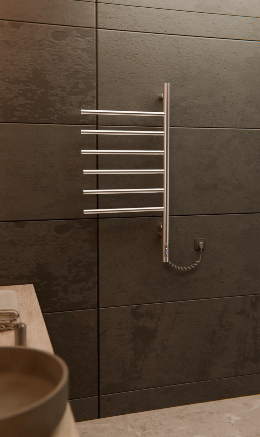 Este toallero eléctrico está diseñado para la comodidad y facilidad de uso. Se puede conectar en cualquier lugar con acceso a la electricidad. Con un sistema de cable interno seco, no requiere fluidos adicionales: simplemente conéctelo y estará listo para funcionar. El dispositivo se calienta rápidamente, alcanzando su temperatura máxima en cuestión de minutos.