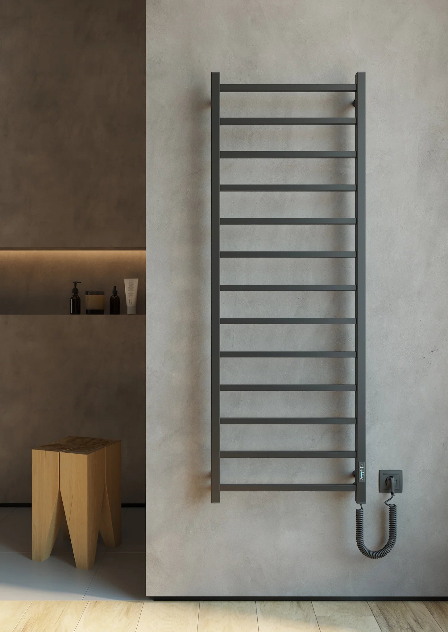 Siguiendo las tendencias mundiales en diseño de interiores de baños, le presentamos un toallero eléctrico con acabado negro mate. Una decisión de diseño perfecta para los clientes totalmente enamorados de los colores industriales y las formas concisas del metal.