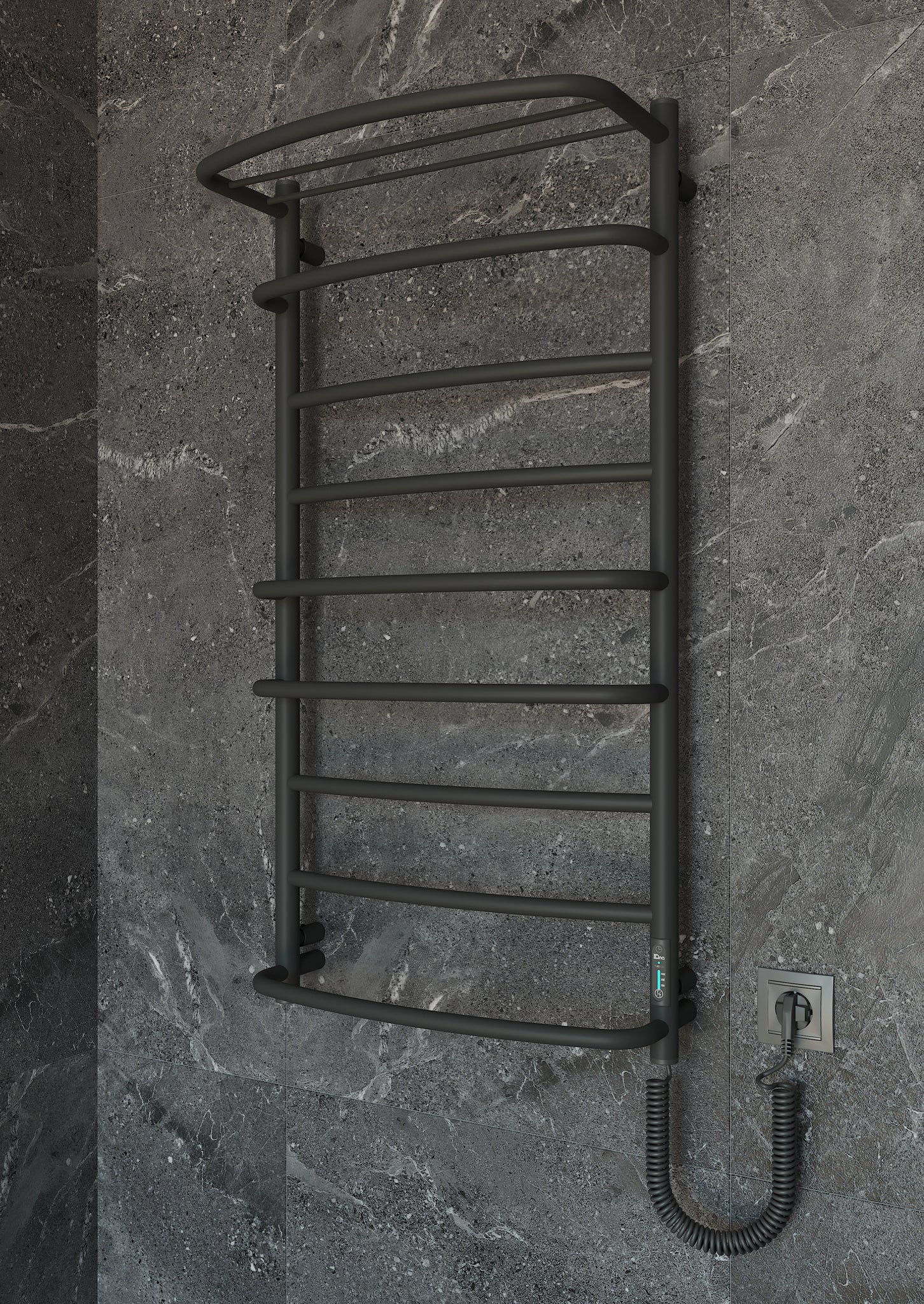 Siguiendo las tendencias mundiales en diseño de interiores de baños, le presentamos el radiador toallero eléctrico con estante con acabado en negro mate. Decisión de diseño perfecta para los clientes que están totalmente enamorados de los colores industriales y las formas concisas del metal.