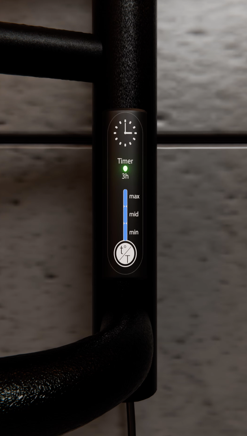 El toallero eléctrico incluye un regulador de temperatura con tres modos de calor ajustables y una función de temporizador incorporada. En el modo TIMER 3H, la unidad se apaga automáticamente después de tres horas de operación para mayor seguridad y ahorro de energía. Altamente eficiente energéticamente, este dispositivo eléctrico para baño consume una electricidad mínima y puede reducir el uso mensual de energía hasta en un 70%.