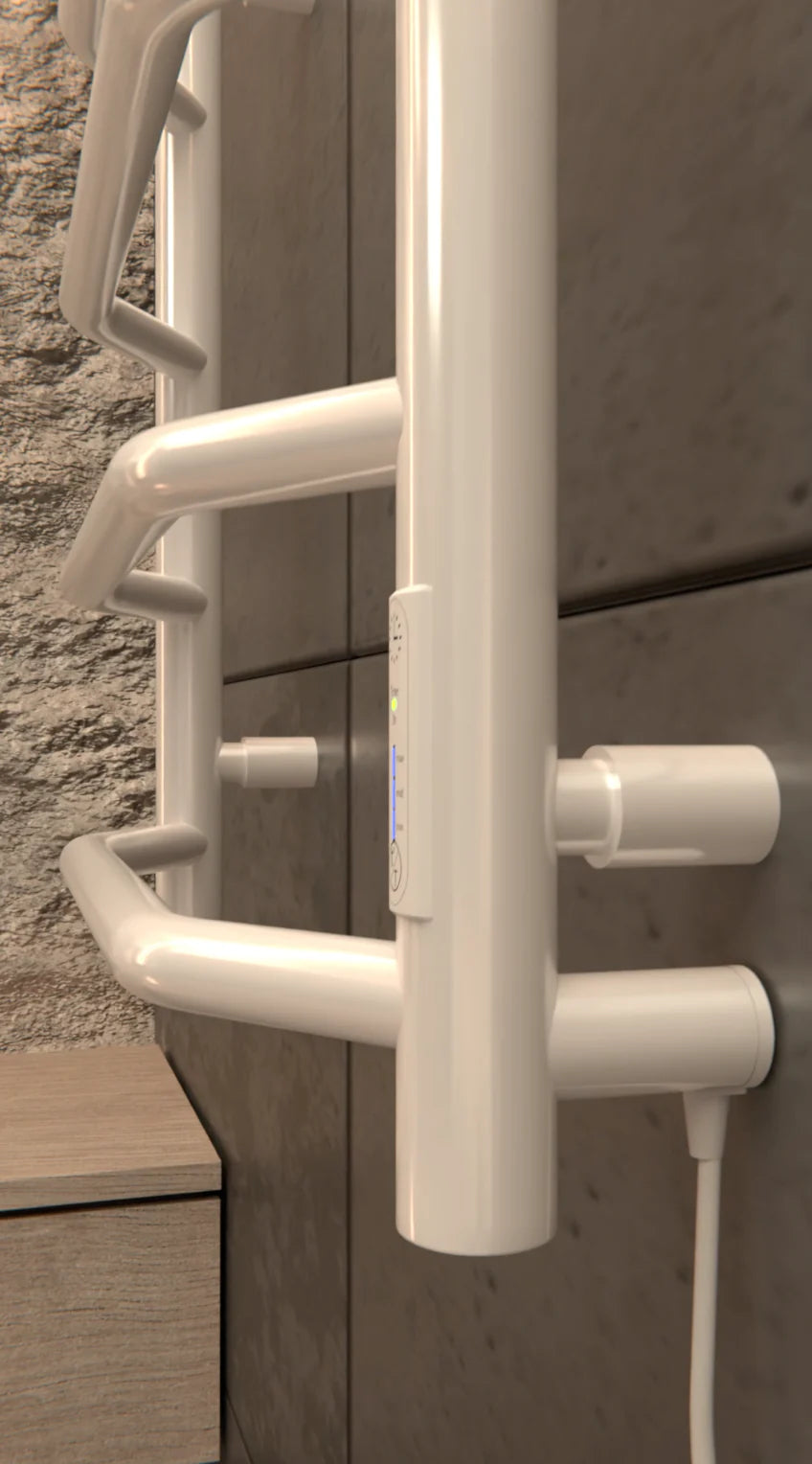 Siguiendo las tendencias mundiales en diseño de interiores de baños, le presentamos un toallero eléctrico con acabado en blanco. Una decisión de diseño perfecta para los clientes totalmente enamorados de los colores industriales y las formas concisas del metal.
